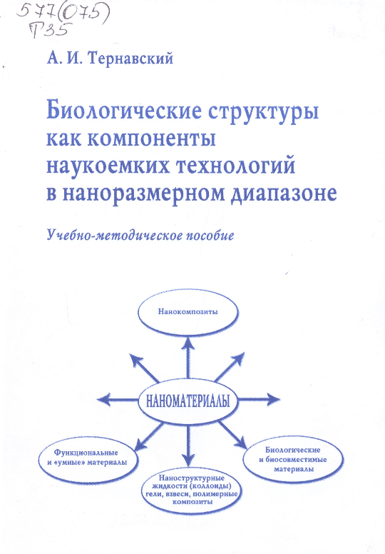 Биологические структуры как компоненты наукоемных технологий в наноразмерном диапазоне [Електронний ресурс] : учебно-метод. пособие / А. И. Тернавский. – Электрон. текст. данные. – Киев : Знания Украины, 2013.