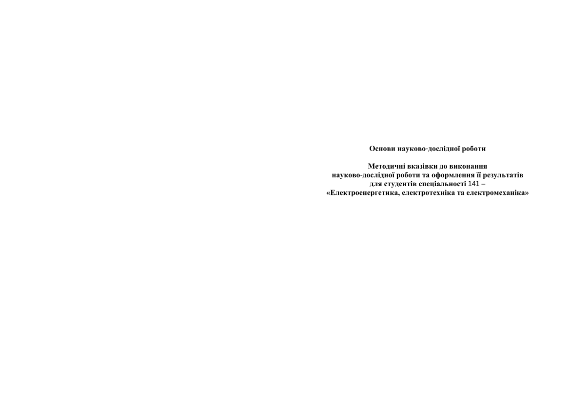 Основи науково-дослідної роботи. Методичні вказівки до виконання науково-дослідної роботи та оформлення її результатів для студентів спеціальності 141 - "Електроенергетика, електротехніка та електромеханіка" [Електронний ресурс] / ВНТУ ; уклад. Ю. А. Шуллє. – Електрон. текст. дані. – Вінниця : ВНТУ, 2018.