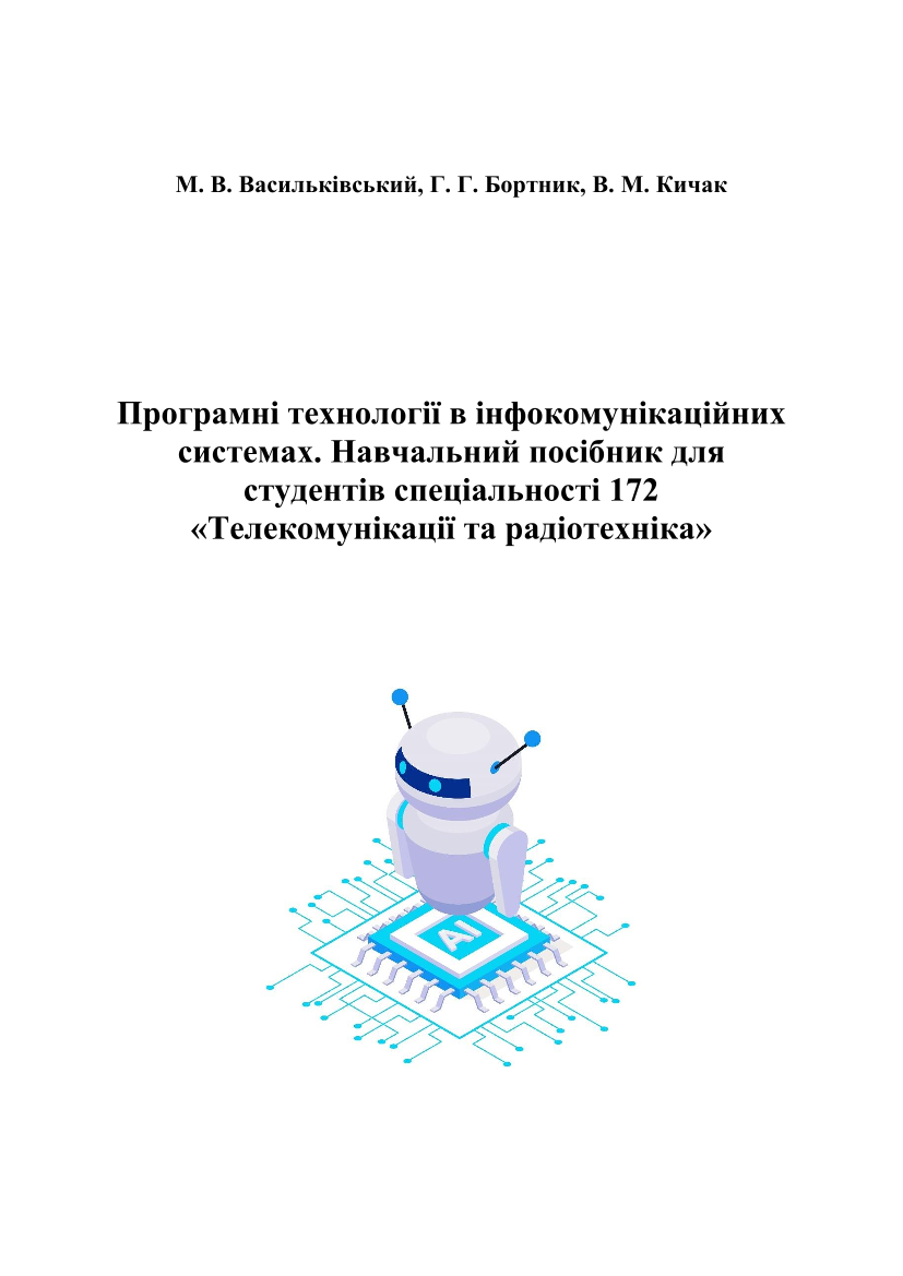 Васильківський, М. В. Програмні технології в інфокомунікаційних системах. Навчальний посібник для студентів спеціальності 172 "Телекомунікації та радіотехніка" [Електронний ресурс] : електронний навчальний посібник комбінованого (локального та мережного) використання / М. В. Васильківський, Г. Г. Бортник, В. М. Кичак ; ВНТУ. – Електрон. текст. дані. – Вінниця : ВНТУ, 2023.