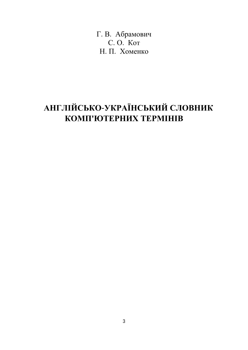 Абрамович, Г. В. Англійсько-український словник комп'ютерних термінів [Електронний ресурс] : словник / Г. В. Абрамович, С. О. Кот, Н. П. Хоменко ; ВНТУ. – Електрон. текст. дані. – Вінниця : ВНТУ, 2016.