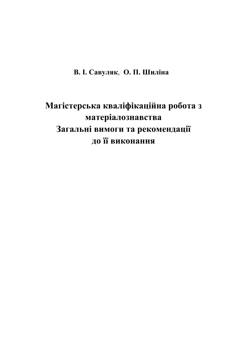 Савуляк, В. І. Магістерська кваліфікаційна робота з матеріалознавства. Загальні вимоги та рекомендації до її виконання [Електронний ресурс] : електронний навчальний посібник комбінованого ( локального та мережного) використання / В. І. Савуляк, О. П. Шиліна ; ВНТУ. – Електрон. текст. дані. – Вінниця : ВНТУ, 2024.