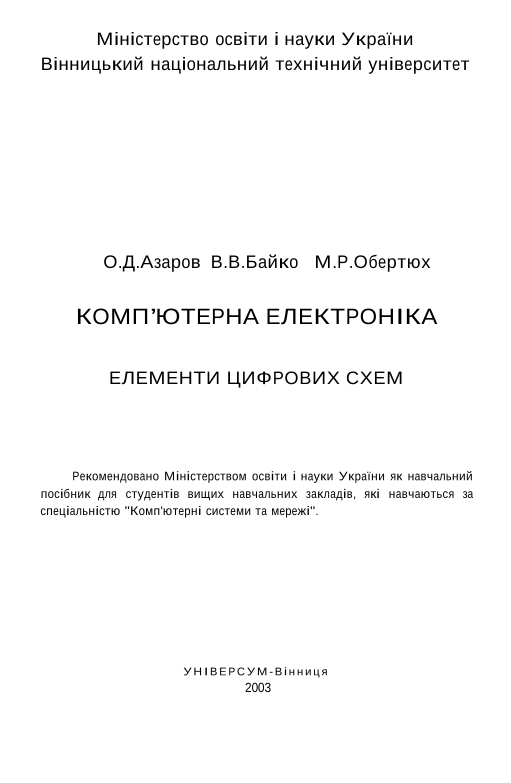 Азаров, О. Д. Комп'ютерна електроніка [Електронний ресурс] : елементи цифрових схем : навчальний посібник / О. Д. Азаров, В. В. Байко, М. Р. Обертюх ; МОН України. – Електрон. текст. дані. – Вінниця : ВНТУ, 2003.