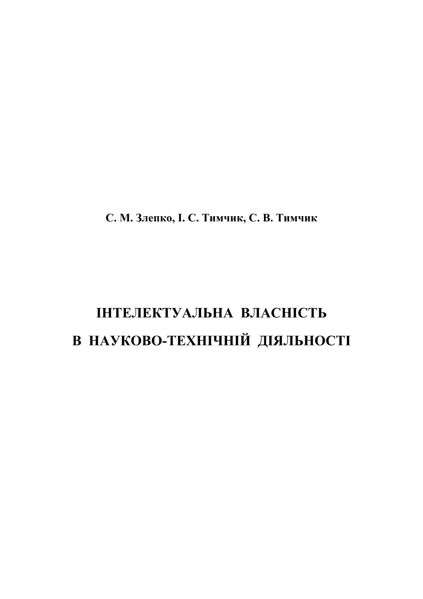 Злепко, С. М. Інтелектуальна власність в науково-технічній діяльності [Електронний ресурс] : навчальний посібник / С. М. Злепко, І. С. Тимчик, С. В. Тимчик ; ВНТУ. – Електрон. текст. дані. – Вінниця : ВНТУ, 2011.