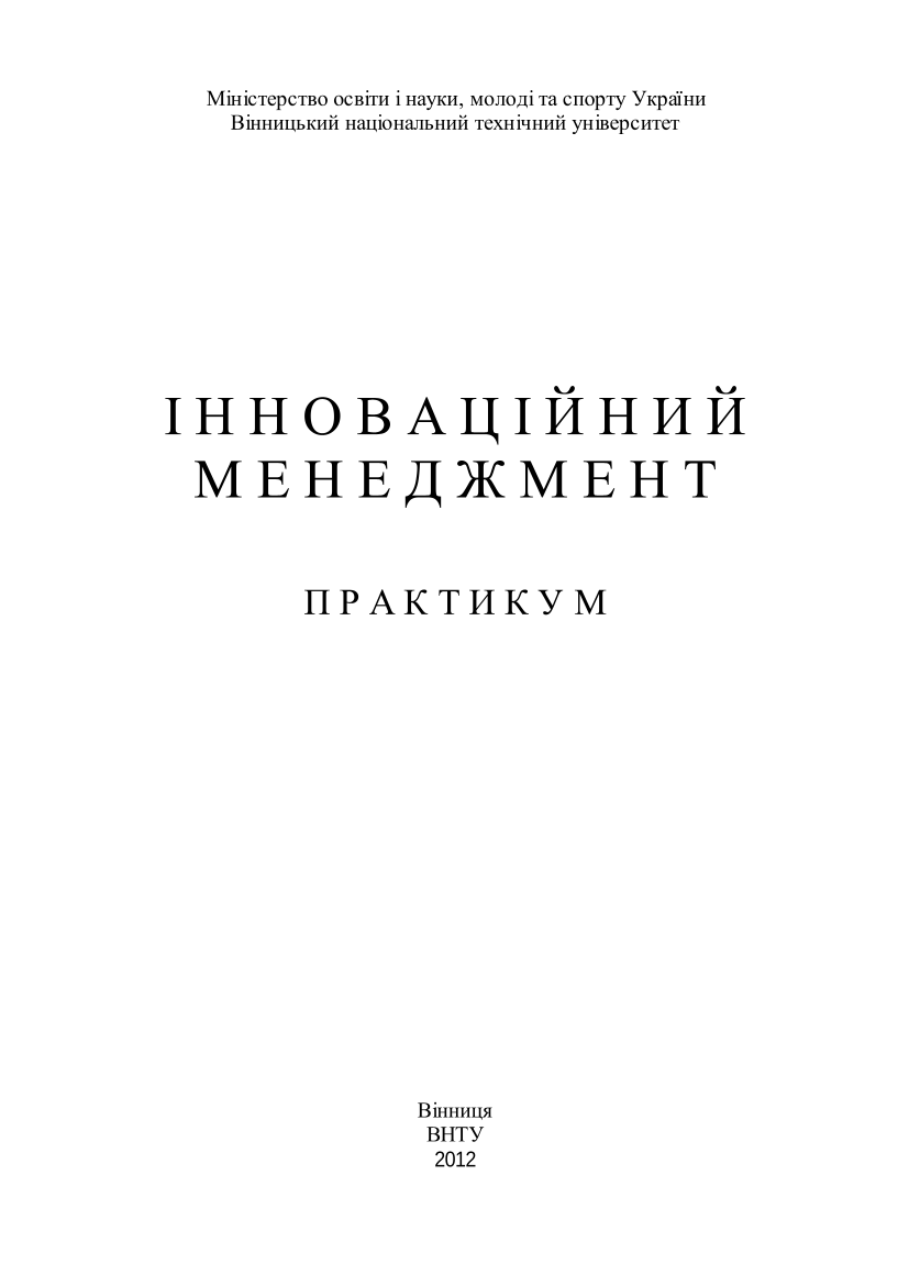 Інноваційний менеджмент [Електронний ресурс] : практикум : навчальний посібник / В. О. Козловський, А. О. Азарова, О. Й. Лесько, М. І. Небава ; МОНМС України, ВНТУ. – Електрон. текстові дані. – Вінниця : ВНТУ, 2012.