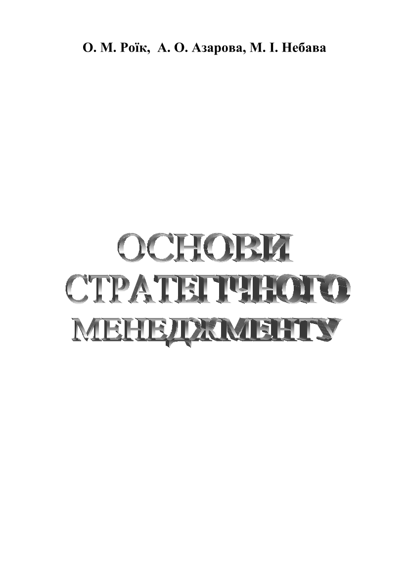 Роїк, О. М. Основи стратегічного менеджменту [Електронний ресурс] : навчальний посібник / О. М. Роїк, А. О. Азарова, М. І. Небава ; ВНТУ. – Електрон. текстові дані. – Вінниця : ВНТУ, 2008.
