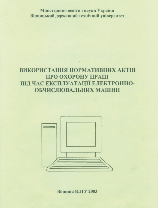 Використання нормативних актів про охорону праці під час експлуатації електронно-обчислювальних машин [Електронний ресурс] : довідник / МОН України ; уклад. Є. А. Бондаренко. – Електрон. текстові дані. – Вінниця : ВДТУ, 2003.
