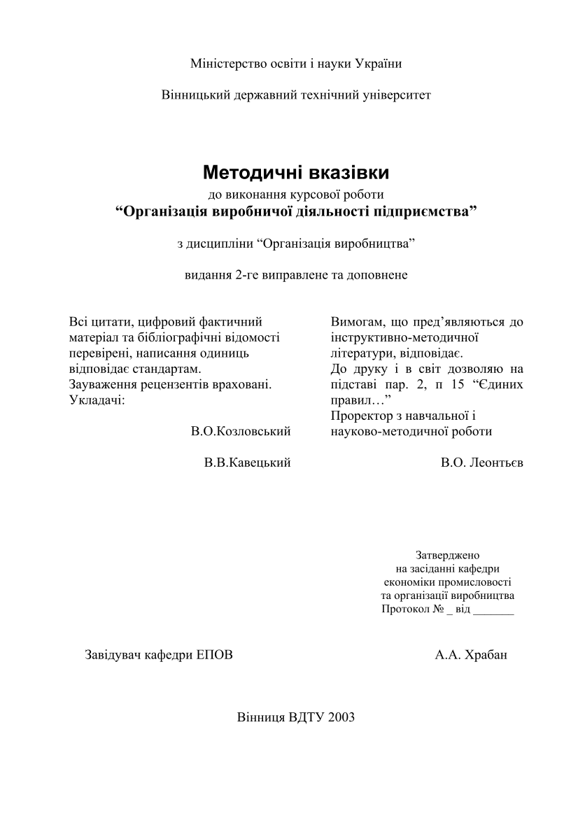 [Електронний ресурс] / ВДТУ ; уклад.: В. В. Кавецький, В. О. Козловський. – 2-ге вид., випр. і допов. – Електрон. текстові дані. – Вінниця : ВДТУ, 2003.
