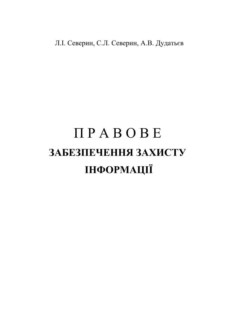 Северин, Л. І. Правове забезпечення захисту інформації [Електронний ресурс] : навчальний посібник / Л. І. Северин, С. Л. Северин, А. В. Дудатьєв ; МОН України. – Електрон. текстові дані. – Вінниця : ВНТУ, 2004.