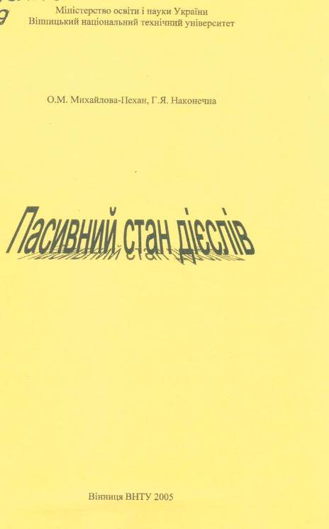 Михайлова-Пехан, О. М. Пасивний стан дієслів [Електронний ресурс] : навчальний посібник / О. М. Михайлова-Пехан, Г. Я. Наконечна ; ВНТУ. – Електрон. текстові дані. – Вінниця : ВНТУ, 2005.