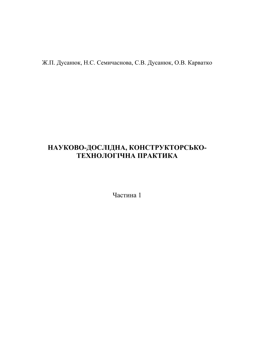 Науково-дослідна, конструкторсько-технологічна практика [Електронний ресурс] : навчальний посібник. Ч. 1 / Ж. П. Дусанюк, Н. С. Семичаснова, С. В. Дусанюк, О. В. Карватко ; ВНТУ. – Електрон. текстові дані. – Вінниця : ВНТУ, 2006.