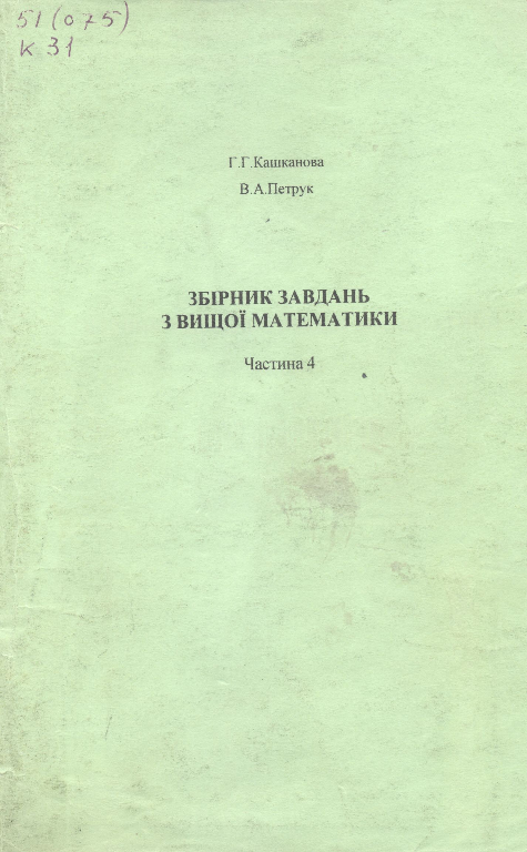 Кашканова, Г. Г. Збірник завдань з вищої математики [Електронний ресурс] : Навчальний посібник. Ч.4 / Г. Г. Кашканова, В. А. Петрук. – Електрон. текстові дані. – Вінниця : ВНТУ, 2004.