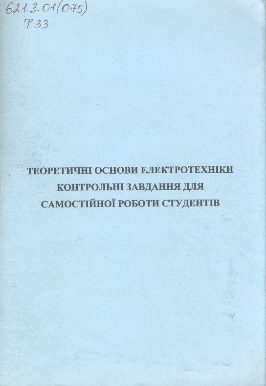 Теоретичні основи електротехніки [Електронний ресурс] : контрольні завдання для самостійної роботи студентів : навчальний посібник / В. Г. Мадьяров, І. К. Говор, Ю. Г. Ведміцький, С. Б. Корж ; ВНТУ. – Електронні текстові дані. – Вінниця : ВНТУ, 2010.