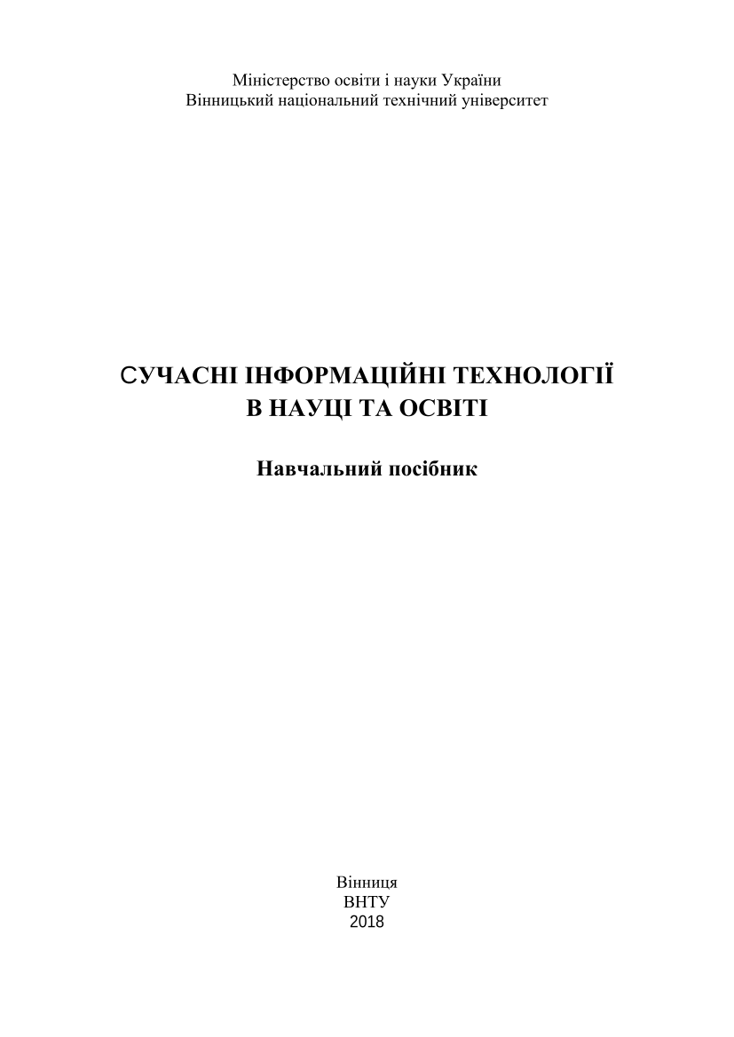 Сучасні інформаційні технології в науці та освіті [Електронний ресурс] : навчальний посібник / С. М. Злепко, С. В. Тимчик, І. В. Федосова [та ін.] ; ВНТУ. – Електрон. текст. дані. – Вінниця : ВНТУ, 2018.