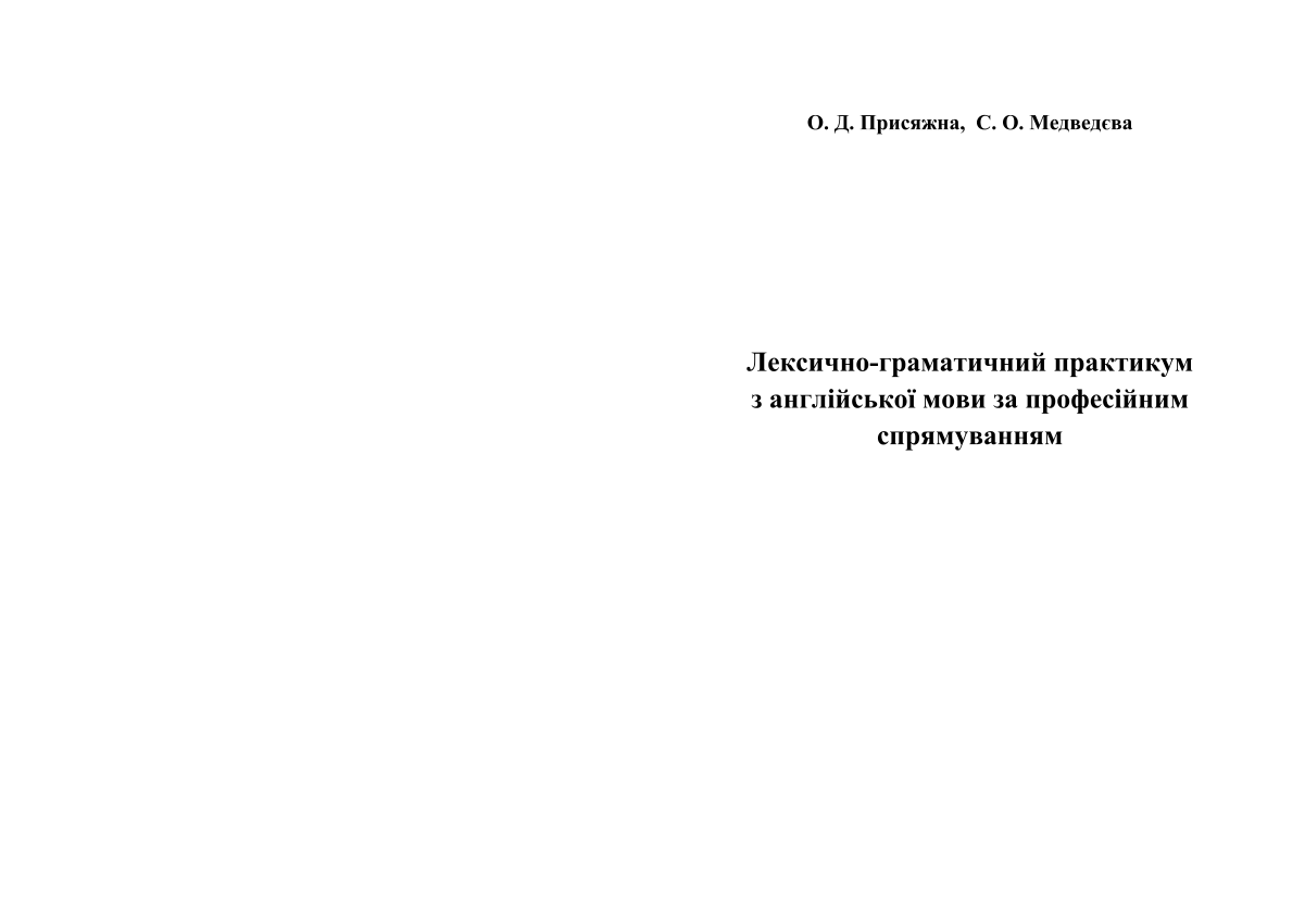 Присяжна, О. Д. Лексично-граматичний практикум з англійської мови за професійним спрямуванням [Електронний ресурс] / О. Д. Присяжна, С. О. Медведєва ; ВНТУ. – Електрон. текст. дані. – Вінниця : ВНТУ, 2019.