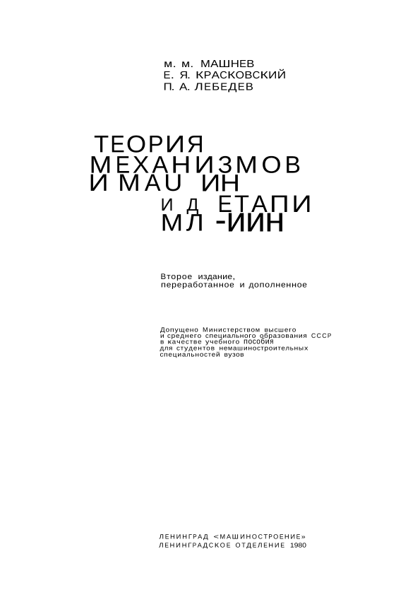 Машнев, М. М. Теория механизмов и машин и детали машин [Електронний ресурс] : учебное пособие для немашиностроит. спец. вузов / М. М. Машнев, Е. Я. Красковский, П. А. Лебедев. – 2-е изд., перераб. и доп. – Электрон. текст. данные. – Ленинград : Машиностроение, 1980.