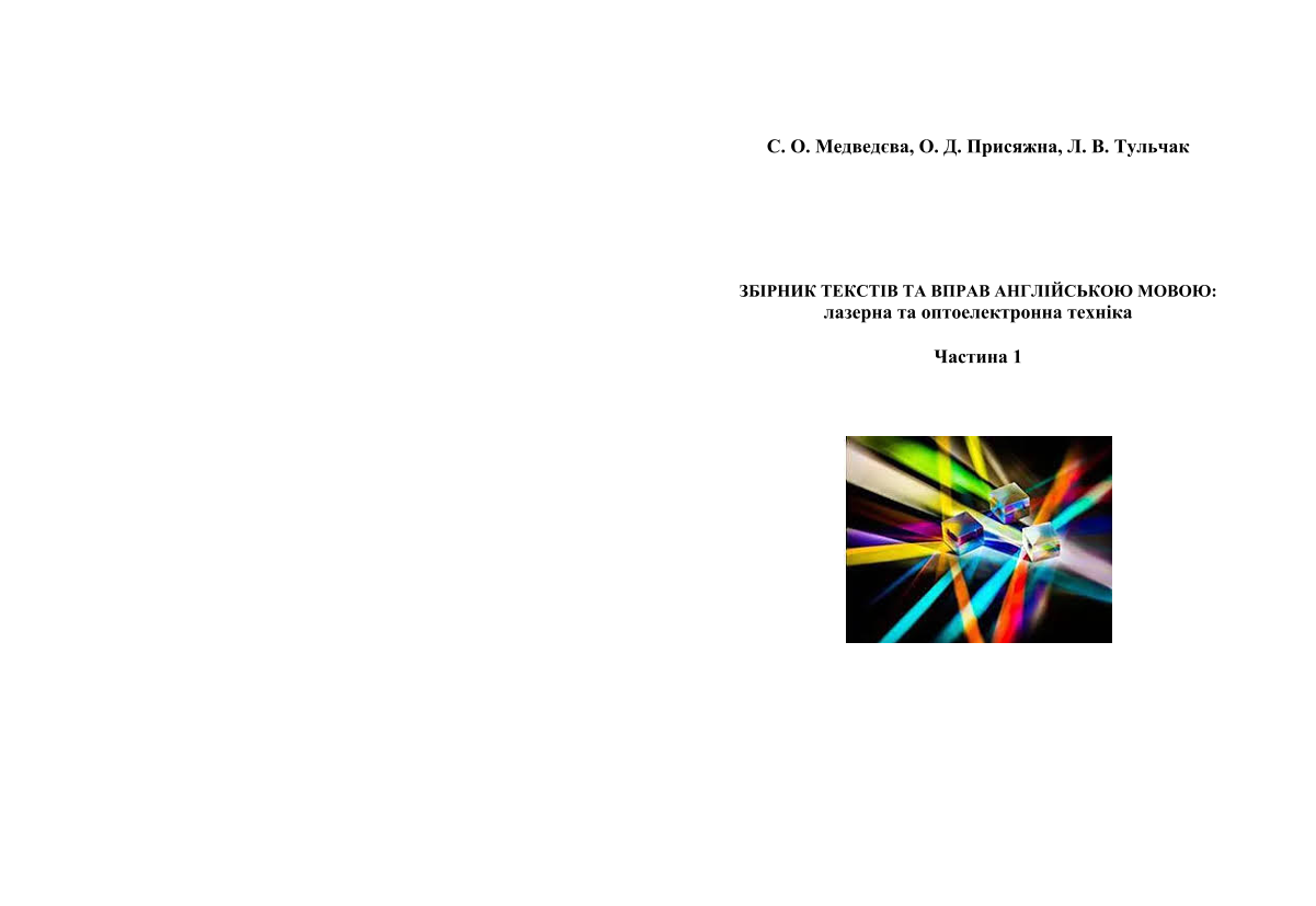 Медведєва, С. О. Збірник текстів та вправ англійською мовою: лазерна та оптоелектронна техніка [Електронний ресурс] : навчальний посібник. Ч. 1 / С. О. Медведєва, О. Д. Присяжна, Л. В. Тульчак ; ВНТУ. – Електрон. текст. дані. – Вінниця : ВНТУ, 2018.