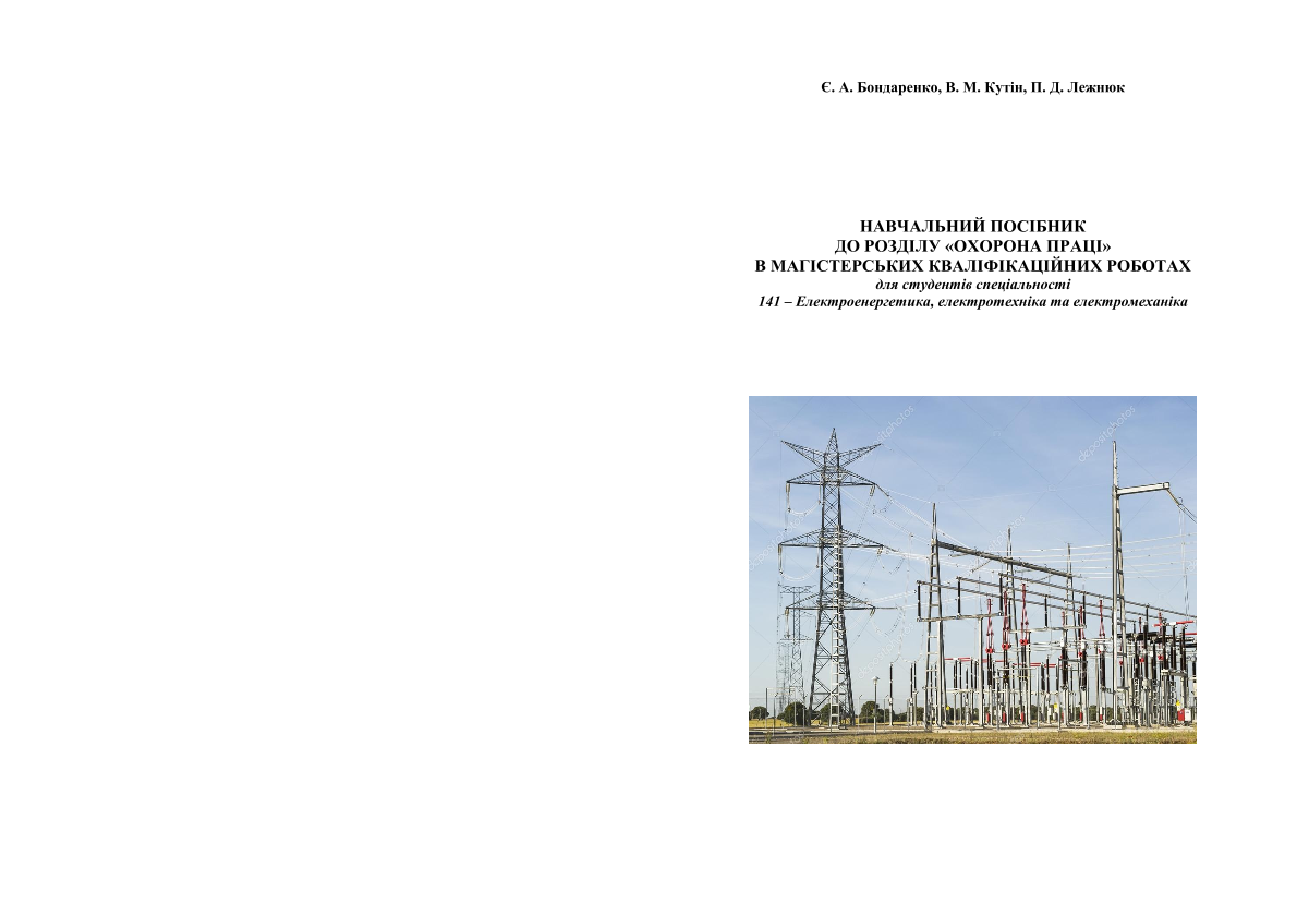 Навчальний посібник до розділу "Охорона праці" в магістерських кваліфікаційних роботах для студентів спеціальності 141 - Електроенергетика, електротехніка та електромеханіка [Електронний ресурс] / Є. А. Бондаренко, В. М. Кутін, П. Д. Лежнюк ; ВНТУ. – Електрон. текст. дані. – Вінниця : ВНТУ, 2018.