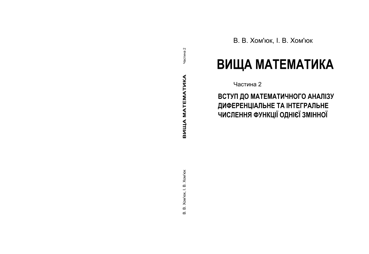 Хом'юк, В. В. Вища математика [Електронний ресурс] : практикум. Ч. 2 : Вступ до математичного аналізу диференціальне та інтегральне числення функції однієї змінної / В. В. Хом'юк, І. В. Хом'юк ; ВНТУ. – Електрон. текст. дані. – Вінниця : ВНТУ, 2017.