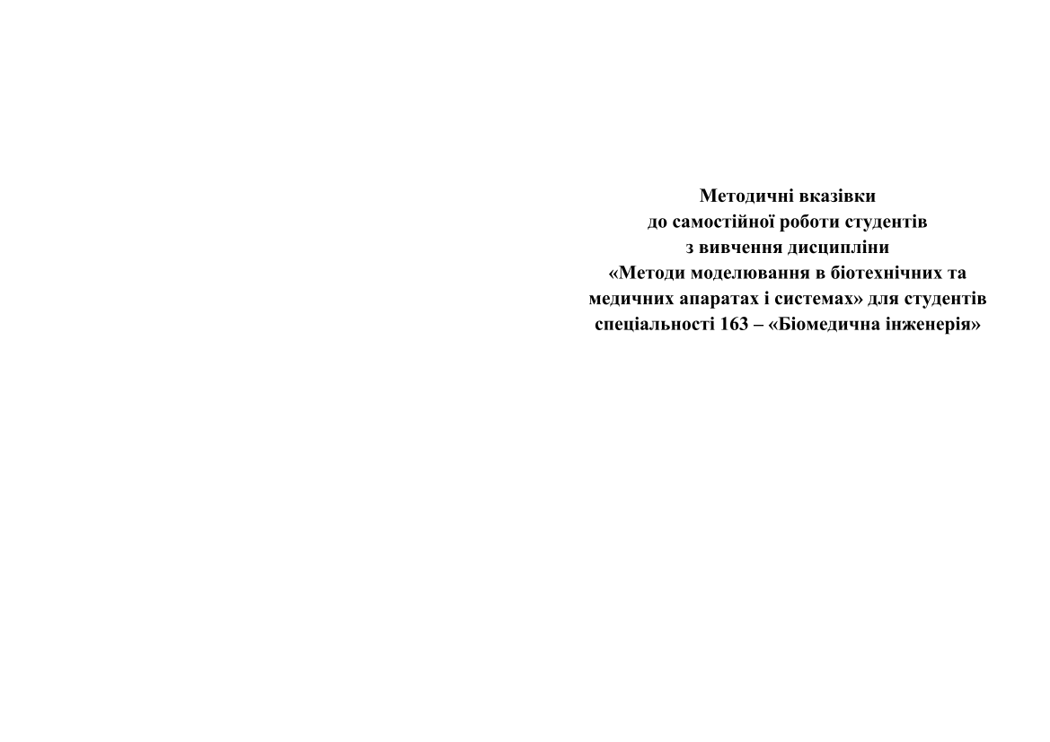 Методичні вказівки містять рекомендації до самостійної підготовки студентів з дисципліни "Методи моделювання в біотехнічних та медичних апаратах і системах".