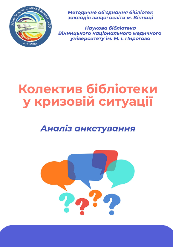 [Електронний ресурс] : аналіз анкетування / Метод. об'єднання б-к ЗВО м. Вінниці, НБ ВНМУ ім. М. І. Пирогова ; уклад. Я. С. Бондарчук, М. І. Мельник. – Електронні текстові дані. – Вінниця, 2022.