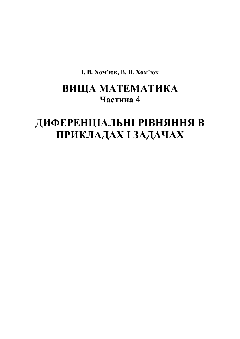 Вища математика [Електронний ресурс] : електронний навчальний посібник комбінованого (локального та мережного) використання. Ч. 4 : Диференціальні рівняння в прикладах і задачах / І. В. Хом'юк, В. В. Хом'юк ; ВНТУ. – Електрон. текст. дані. – Вінниця : ВНТУ, 2023.