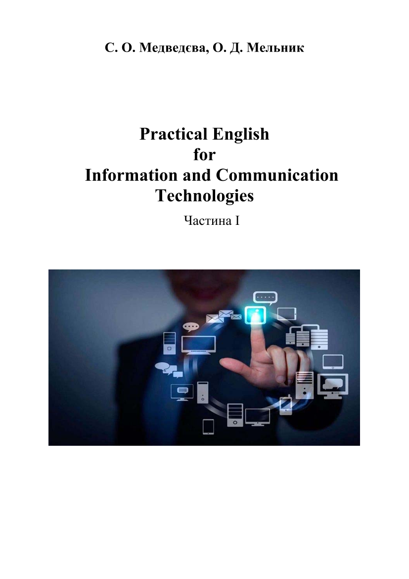 Медведєва, С. О. Practical English for Informaition and Communication Technologies [Електронний ресурс] : електронний навчальний посібник комбінованого (локального та мережного) використання. Ч. 1 / С. О. Медведєва, О. Д. Мельник ; ВНТУ. – Електрон. текст. дані. – Вінниця : ВНТУ, 2022.