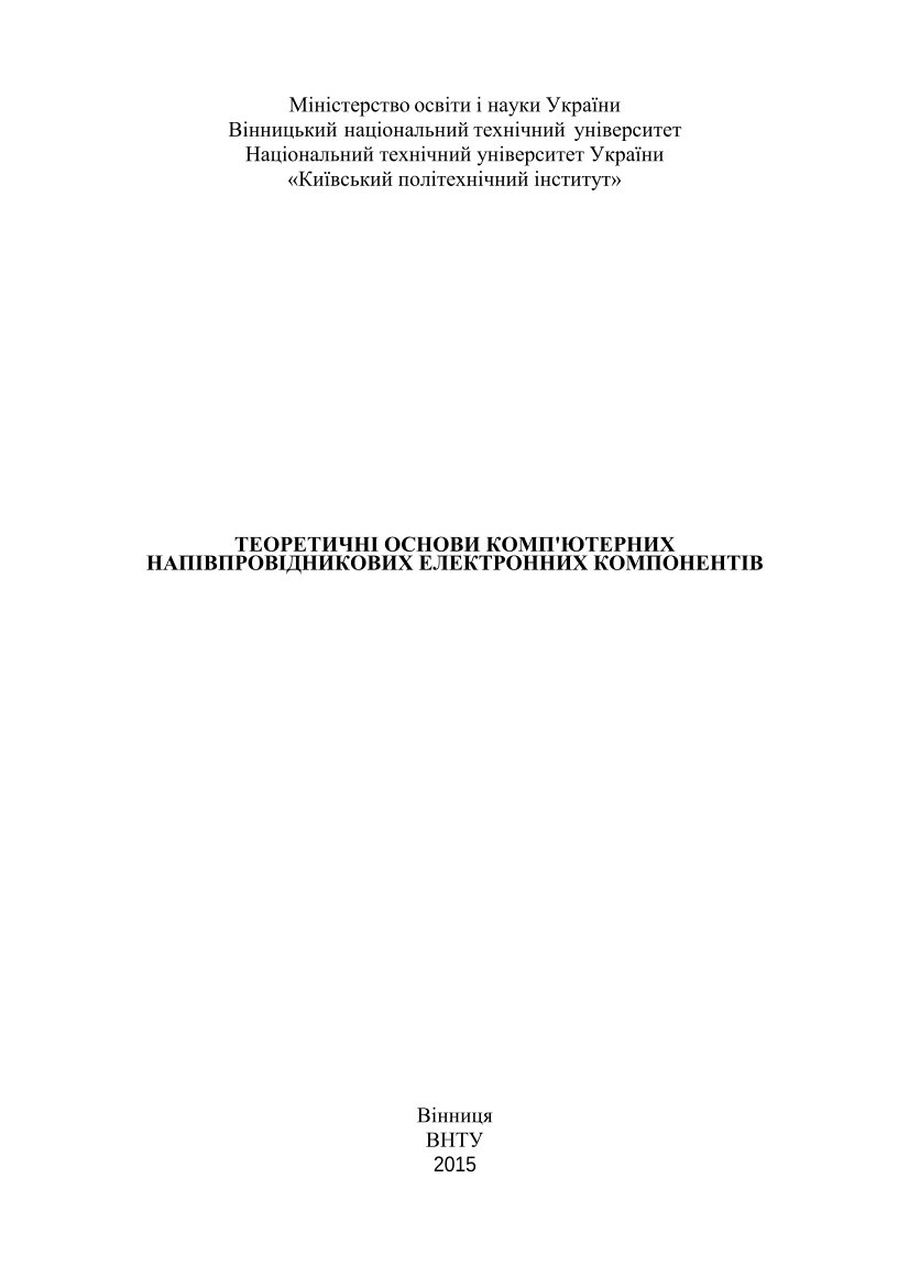 Теоретичні основи комп'ютерних напівпровідникових електронних компонентів [Електронний ресурс] : навчальний посібник / О. Д. Азаров, В. А. Гарнага, Т. Г. Сапсай, В. П. Тарасенко ; ВНТУ, НТУ України "КПІ". – Електрон. текст. дані. – Вінниця : ВНТУ, 2015. – .