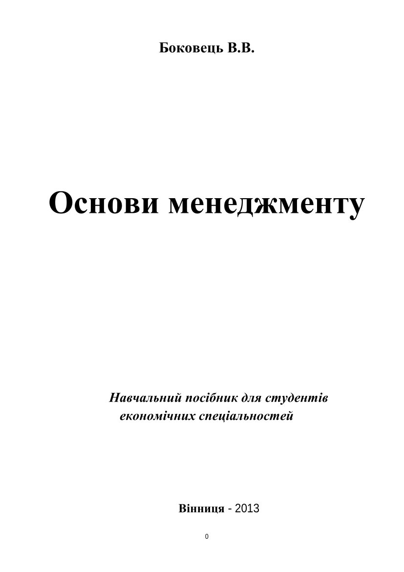 Боковець, В. В. Основи менеджменту [Електронний ресурс] : навчальний посібник / В. В. Боковець. – Електрон. текст. дані. – Вінниця, 2013.