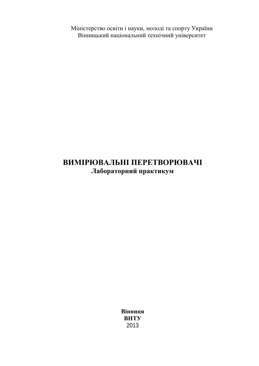 Вимірювальні перетворювачі [Електронний ресурс] : лабораторний практикум / В. Ю. Кучерук, В. М. Севастьянов, О. Г. Ігнатенко, В. С. Маньковська ; ВНТУ. – Електрон. текст. дані. – Вінниця : ВНТУ, 2013.