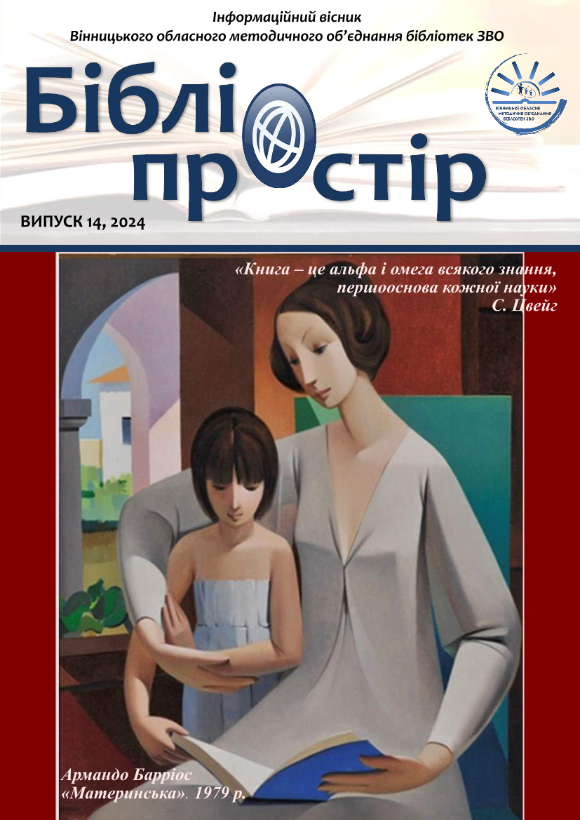[Електронний ресурс] : інформаційний вісник / методичне об’єднання ЗВО м. Вінниці. – Електрон. текстові дані. – 2024. – № 14. – До 2019 р. назва була "Сучасні орієнтири університетських бібліотек".