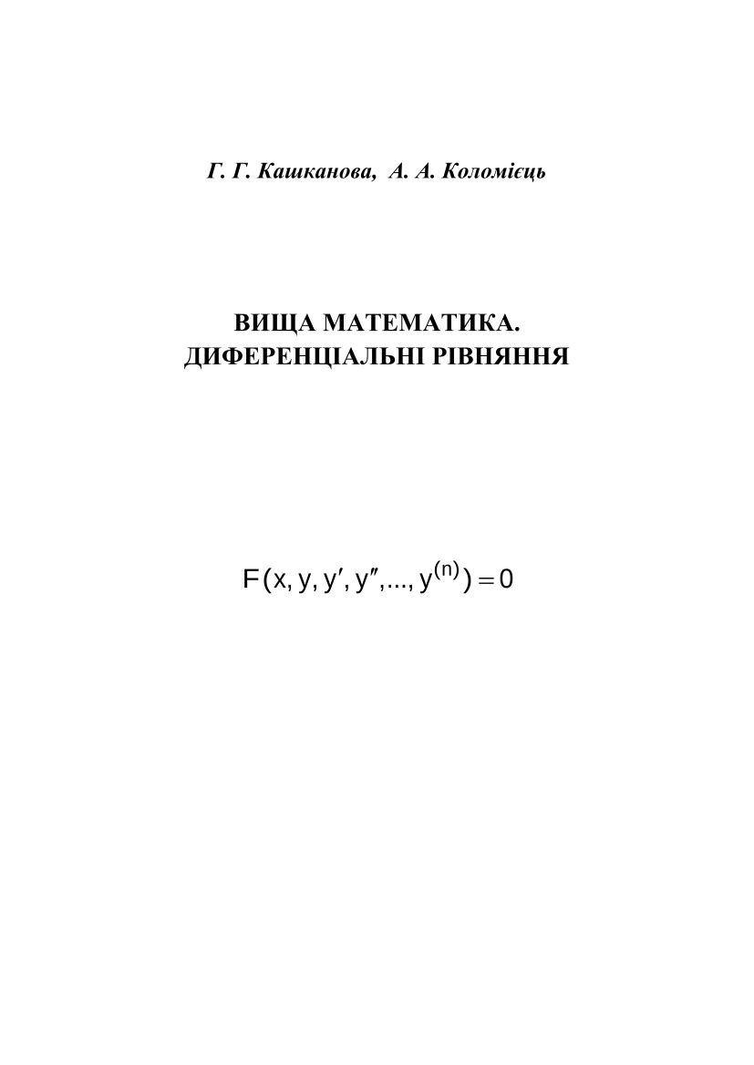 Вища математика. Диференціальні рівняння [Електронний ресурс] : електронний навчальний посібник / Г. Г. Кашканова, А. А. Коломієць ; ВНТУ. – Електрон. текст. дані. – Вінниця : ВНТУ, 2025.