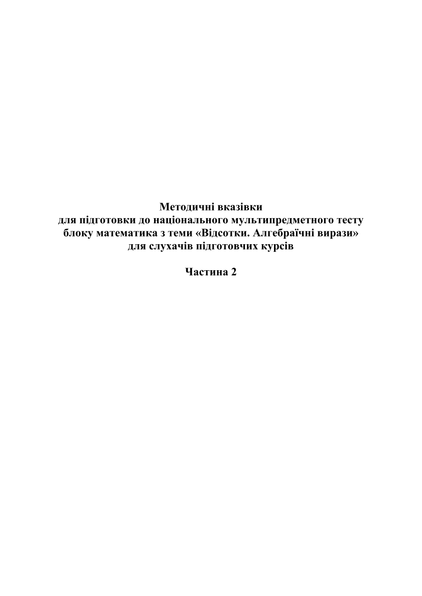Методичні вказівки для підготовки до національного мультипредметного тесту блоку математика з теми «Відсотки. Алгебраїчні вирази» для слухачів підготовчих курсів [Електронний ресурс]. Частина 2 / Уклад.: Г. Г. Кашканова. – Електрон. текст. дані. – Вінниця : ВНТУ, 2025.