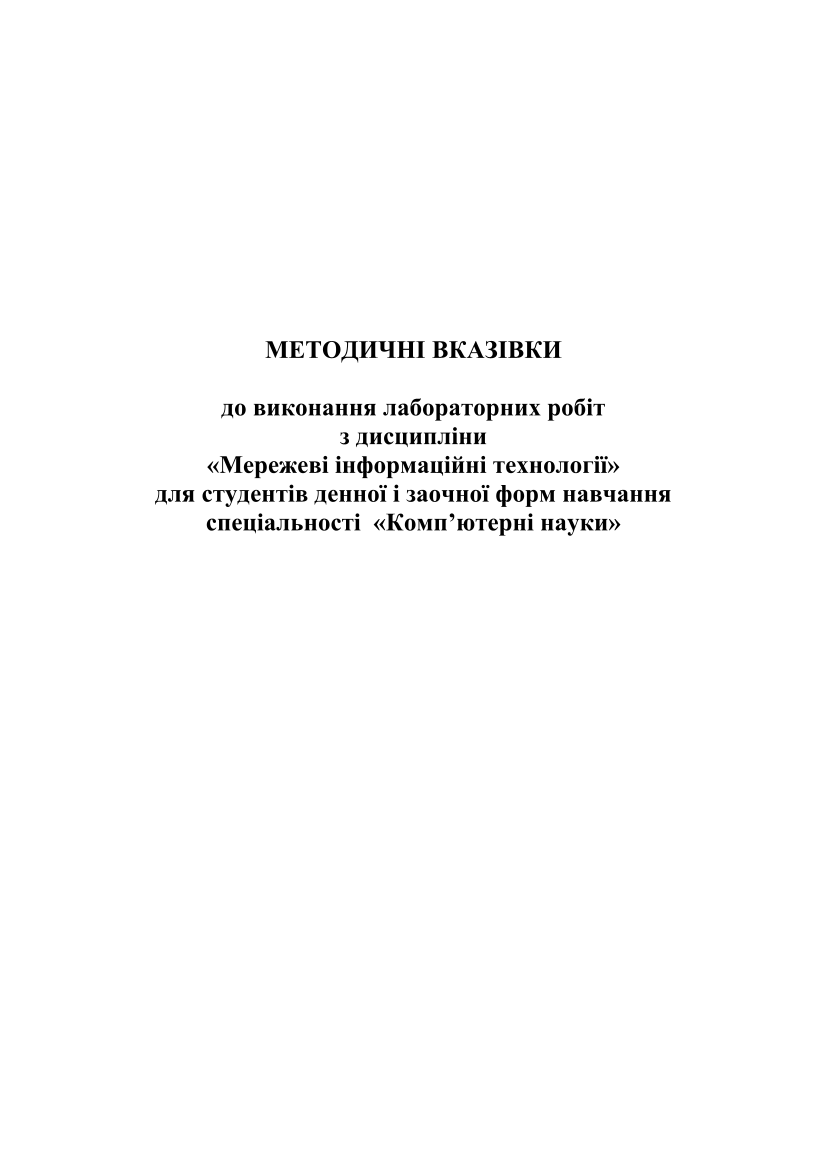 Методичні вказівки до виконання лабораторних робіт з дисципліни "Мережеві інформаційні технології" для студентів денної і заочної форм навчання спеціальності "Комп'ютерні науки" [Електронний ресурс] / ВНТУ ; уклад.: І. Р. Арсенюк, В. І. Месюра, С. В. Барабан, В. П. Майданюк. – Електрон. текст. дані. – Вінниця : ВНТУ, 2021.