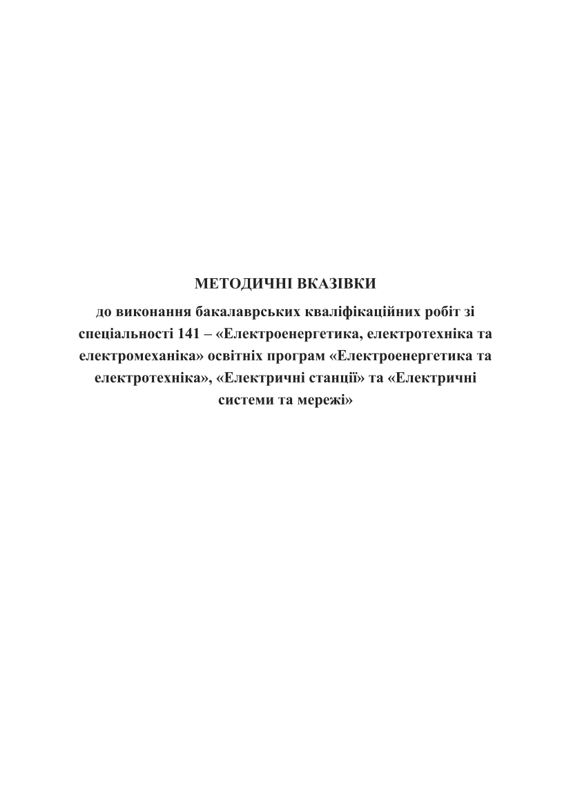 Методичні вказівки до виконання бакалаврських кваліфікаційних робіт зі спеціальності 141 –«Електроенергетика, електротехніка та електромеханіка» освітніх програм «Електроенергетика та електротехніка», «Електричні станції» [Електронний ресурс] / Уклад.: В. В. Тептя, В. О. Комар. – Електрон. текст. дані. – Вінниця : ВНТУ, 2022.