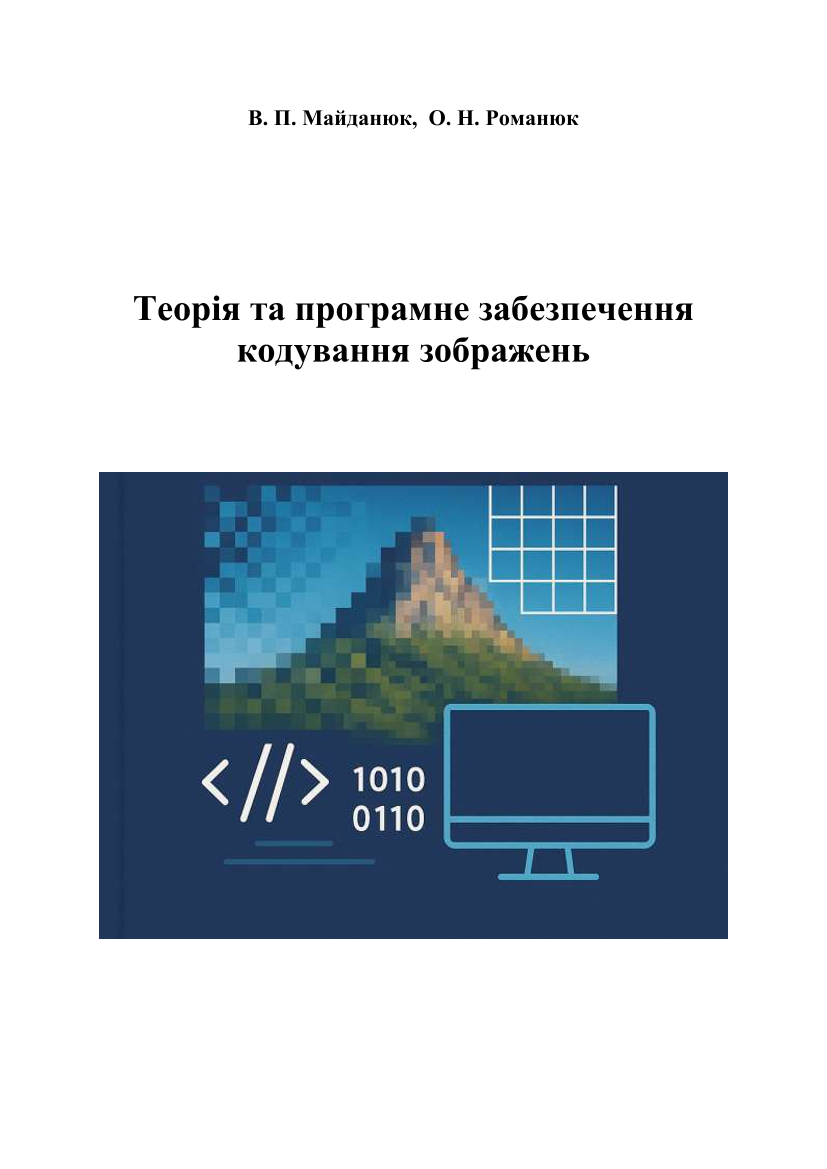 Майданюк, В. П. Теорія та програмне забезпечення кодування зображень [Електронний ресурс] : електронний навчальний посібник комбінованого (локального та мережного) використання / В. П. Майданюк, О. Н. Романюк ; ВНТУ. – Електрон. текст. дані. – Вінниця : ВНТУ, 2026.